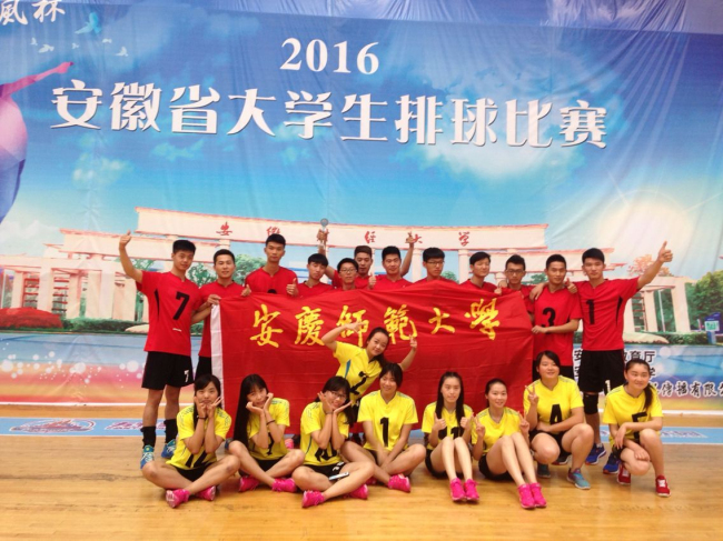 5月1日至5月30日,由安徽省教育厅主办的2016年安徽省大学生排球比赛在安徽财经大学体育馆举行。全省19所高校29支代表队的400余名运动员参加了本次比赛。我校分别派出了由李斌、邓龙两位老师为教练的男子丙组排球队和女子丙组排球队,由闻又文、张加军两位老师为教练的女子甲组排球队,共计2个组别3支队伍参加了此次比赛。面对很多来自运动训练专业和对口招生专业的高校队伍,我们不畏强敌,奋勇拼搏,经过激烈竞争,我校代表队最终获得男子排球队丙组第四名,女子排球队获得了丙组第五名的好成绩。