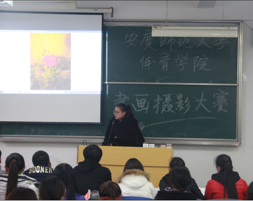 经过评委们的层层筛选,最终15级体教2班的汪云松以其苍劲有力的笔锋获得了软笔组的一等奖;硬笔组一等奖由15级休体2班的查怡晗获得;14级体教4班的王桂新获绘画组第一名;15级体教1班的陈钰荣摄影组一等奖。