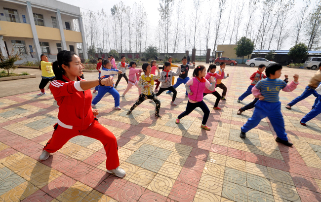 今年3月,作为师范生的许丽雪在经过“自己申请、学院选拔”后,作为优秀学生被统一安排推荐到安庆市皖河大联小学,开始了为期一个学期的支教实习,承担体育、英语、信息和科学4门课程的教学。这是一所有点特殊的学校,165名学生中有134名留守儿童。由于长期缺乏父母的陪伴,很多留守儿童在课余时间都无所事事,还时不时的有打架的事情发生。许丽雪看在眼里,急在心上。于是建立起一支留守儿童的武术队并且带领他们登上大学校园的表演舞台,成了许丽雪最初的想法。